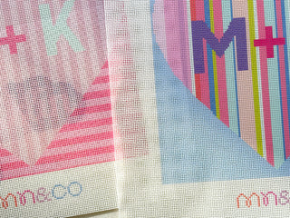 We use heirloom quality materials; industry gold standard Zweigart Mono Deluxe Needlepoint Canvas and pigmented eco-friendly colorfast inks.